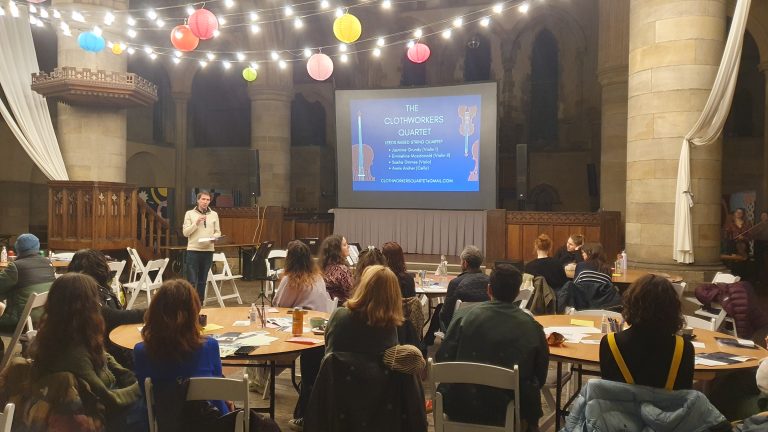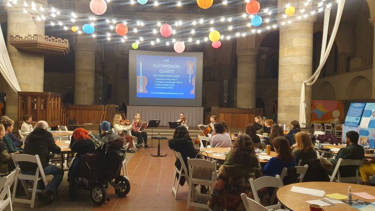 R3connect toured community venues across the North of England in 2024, plus an online screening, showcasing artworks from the research and animation course, screening animations and a performance from String Quartet, The Clothworkers Quartet (link opens new window). These live events have been funded by Creative Minds (link opens new window) and The National Lottery Community Fund (link opens new window), so we could offer these for FREE.